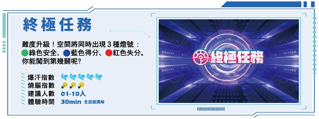 以上關卡若報名年紀在6-12歲需成年人陪同進場體驗。